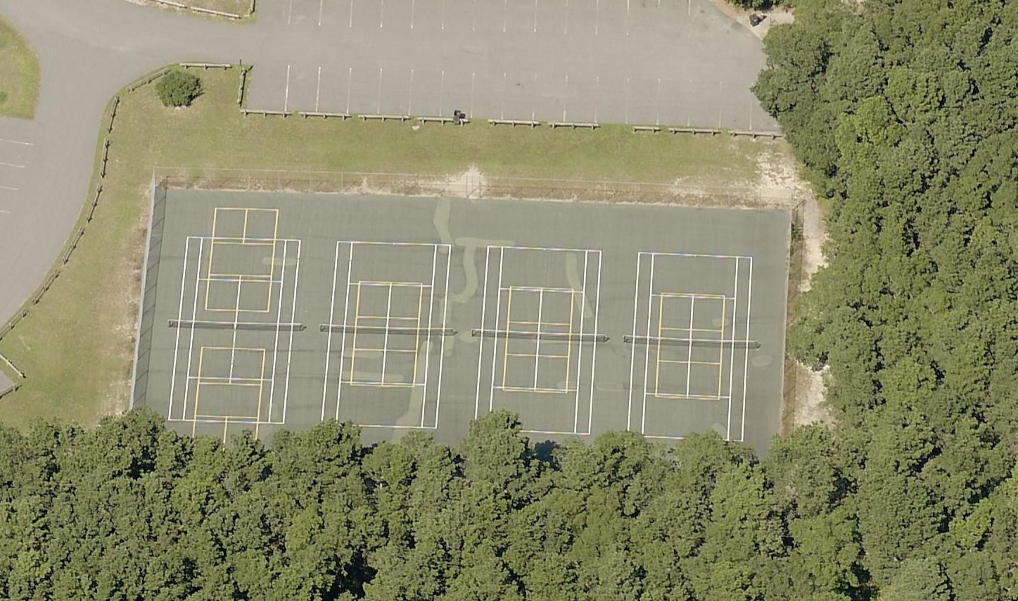 Sandy Pond Recreation Area is a place to play pickleball in West Yarmouth, MA. There are 5 outdoor asphalt courts. The lines are permanent, but you'll need to bring your own net. The courts are free. The facility includes amenities like restrooms and water. The courts cannot be reserved.